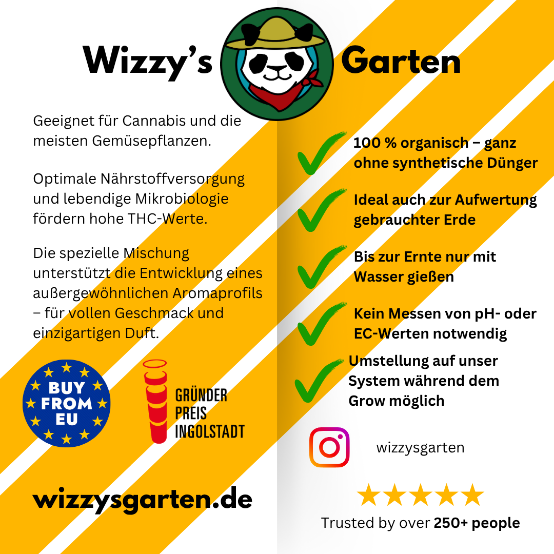 Organisches Gärtnern leicht gemacht: Mit Wizzy’s Magic Soil Mix brauchst du nur Wasser – den Rest übernimmt die Natur.