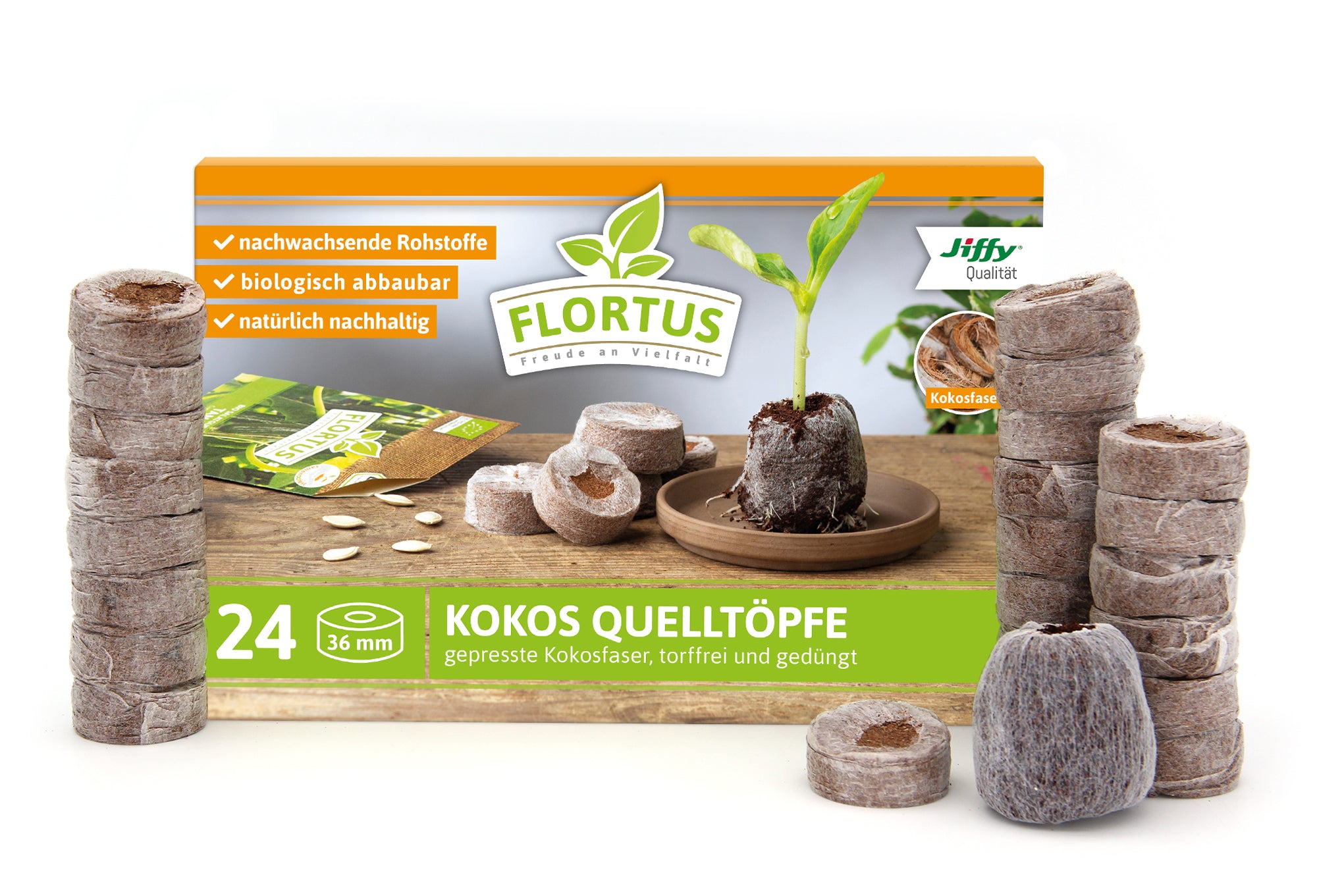 Flortus Quelltöpfe - Perfekt zur Anzucht 100% Torffrei Hochwertige 100% RHP-zertifizierte Kokosfaser im PLA(Polymilchsäure) Netz zu einer handlichen Tablette komprimiert,... Lesen Sie mehr
